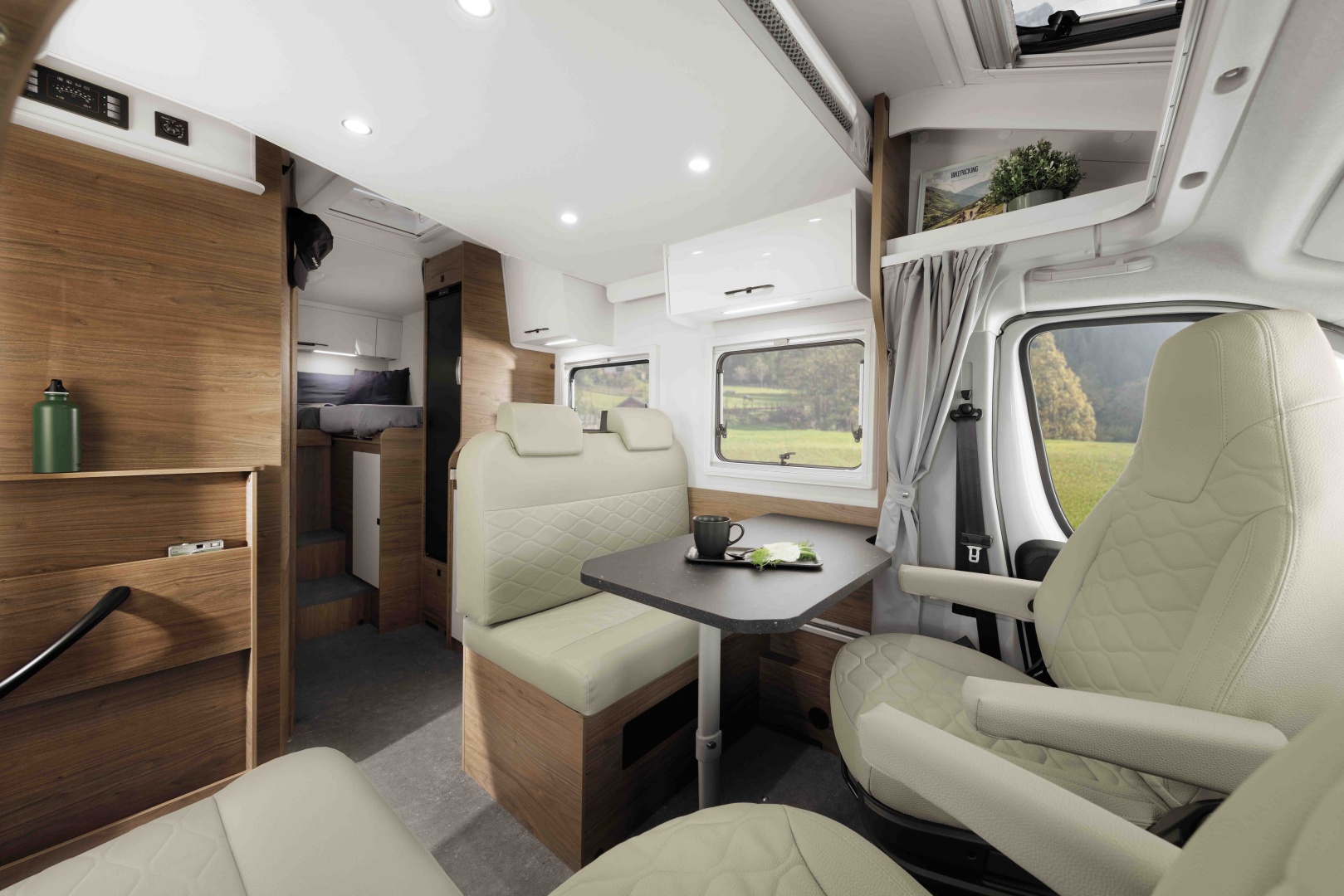 Trotz schlanker 2,14 Meter Breite bieten beide Wohnmobile modulare Schlaflösungen und ein offenes Raumgefühl. Der TS 70 LS punktet zusätzlich mit einer großzügigen Lounge-Sitzgruppe, serienmäßigem Variobad, geräumigem 135-Liter-Kühlschrank, ISOFIX-Halterungen und optionalem T-Hauben-Fenster.