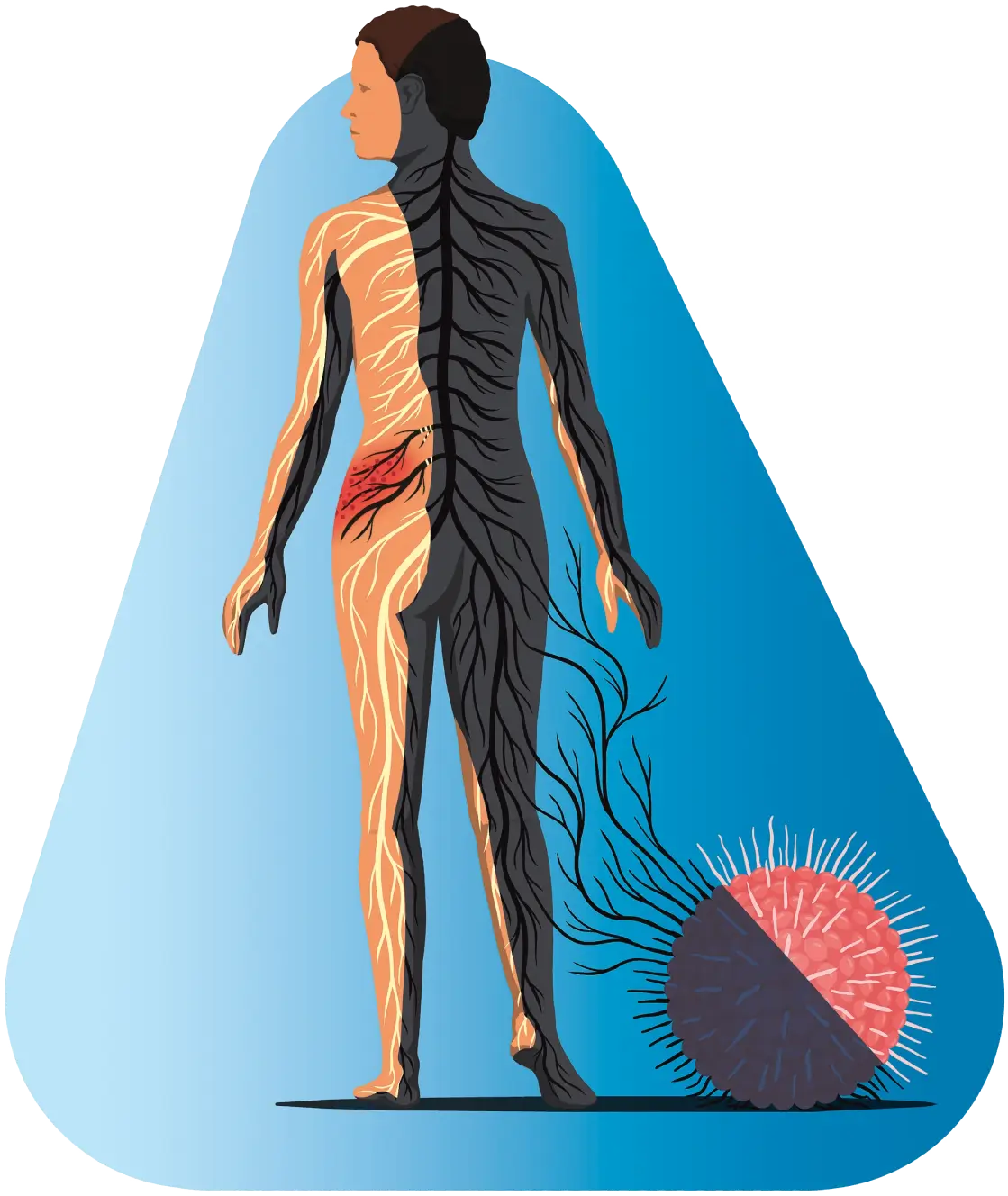Auslöser für Gürtelrose sind die Varizella Zoster-Viren, die nach der initialen Infektion die als Kinderkrankheit bekannten Windpocken verursachen. Mehr als 95 Prozent der heute Erwachsenen in Deutschland tragen diese Viren nach einer überstandenen Windpocken-Erkrankung im Kindesalter in sich. Da das Immunsystem die Viren nicht komplett aus unserem Körper entfernen kann, schlummern diese nach der Windpockeninfektion in den Nervenknoten am Rückenmark und werden vom Immunsystem in Schach gehalten. Wird dieses allerdings durch Alter, psychischen Stress, zu viel UV-Strahlung oder auch chronische Krankheiten geschwächt, können die Viren wieder aktiv werden und zur Gürtelrose führen. Etwa 60 Prozent der über 50-Jährigen sind von chronischen Krankheiten wie Diabetes, Herz-Kreislauf-Erkrankungen oder Atemwegserkrankungen wie Asthma betroffen. Sie haben damit auch ein erhöhtes Risiko, an Gürtelrose zu erkranken.